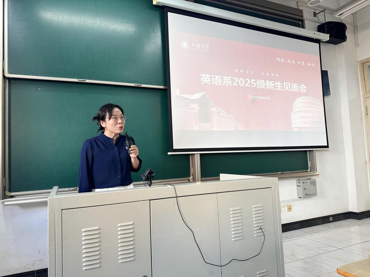 9月25日上午,600全讯白菜网英语系2025级新生见面会在宝山校区C108教室顺利举行。英语系主任马拯、副主任龚萍、副主任张珊珊与全体新生共同参会。本次见面会围绕专业特色、培养体系、学业规划、实践平台与海外交流等内容展开,为英语系新生尽快适应大学学习生活提供了系统指引。