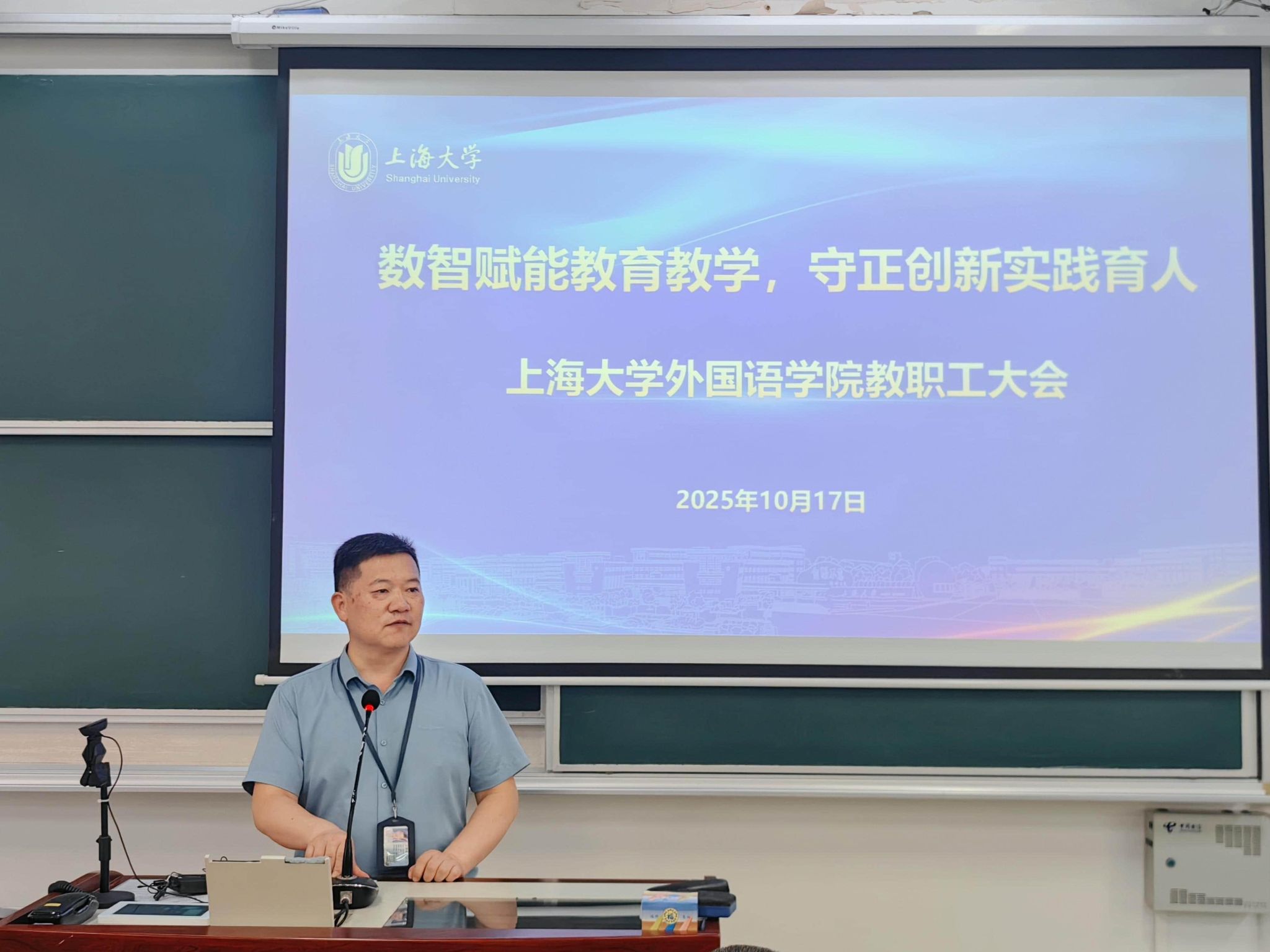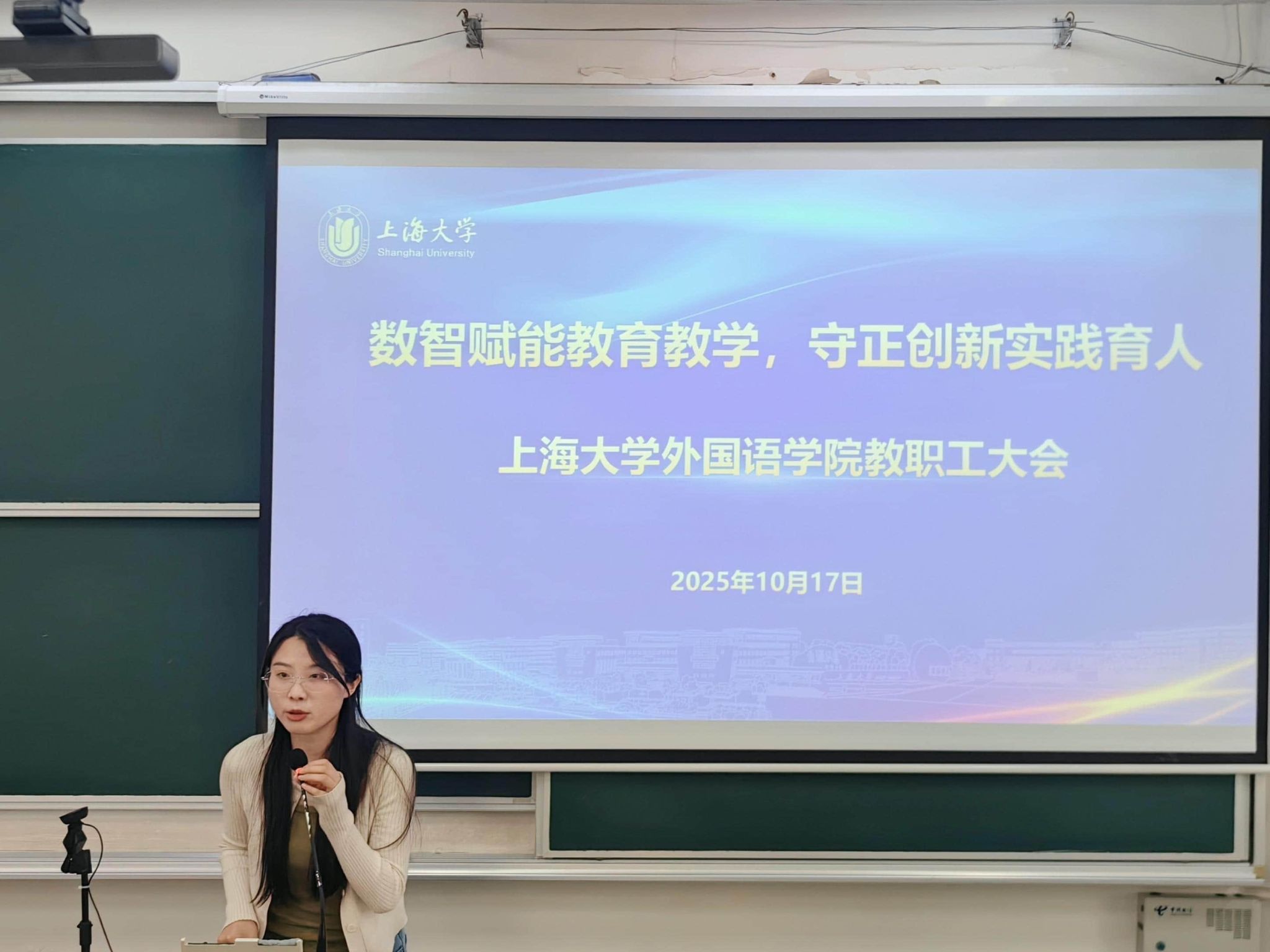 随后,尚新院长主持主题为“数字赋能教育教学、守正创新实践育人”的学院教育教学经验分享会,他表示,此次邀请学院教师来分享交流,旨在结合学院实际,激发全体老师们通过身边的优秀案例去学习和思考AI 赋能教育教学实践创新的可能性。