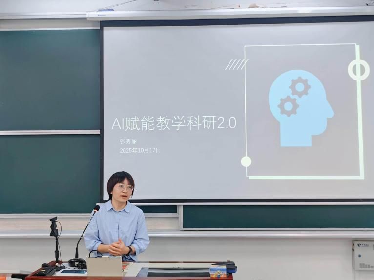 张秀丽副教授以“AI赋能教学科研2.0”为题分享如何运用AI工具做好教学科研的经验与感悟。她结合自身教学、生活实践,强调了拥抱AI的重要性,并表示,作为大学老师,要提高创新能力和反操控算法的能动性,充分利用AI在辅助教学中的优势。